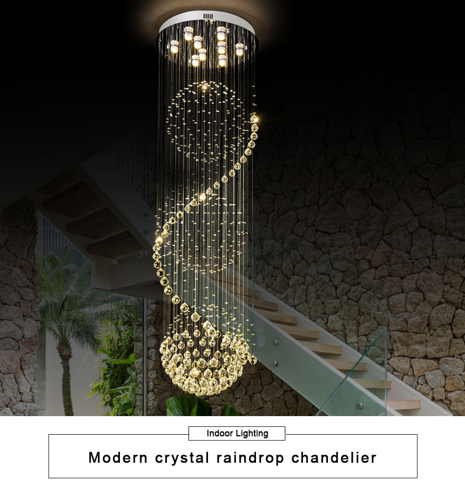 Modern K9 crystal Chandeliers LED Crystal long Staircase Indoor Chandelier Long Stair lamps Villa Hotel hall Lighting Fixture